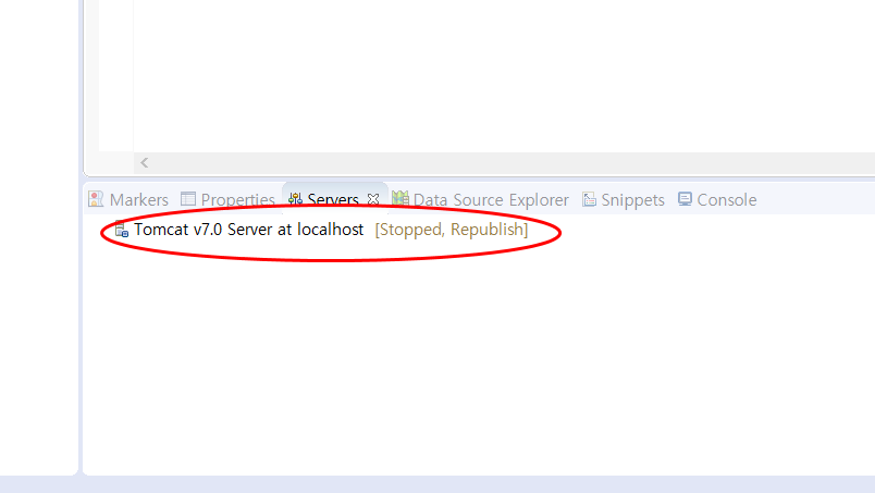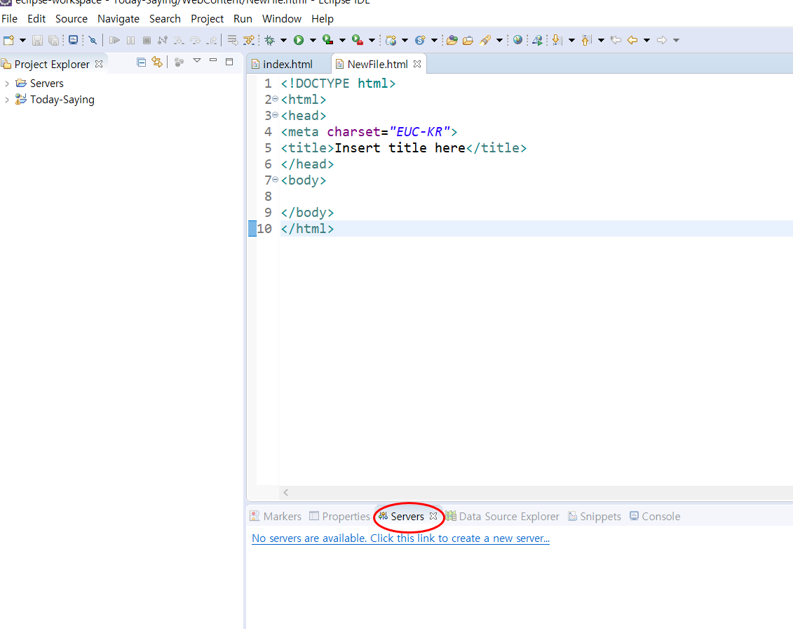 5) 이클립스 하단의 Server메뉴에 들어가 아래 No servers are.... 글자를 클릭합니다.